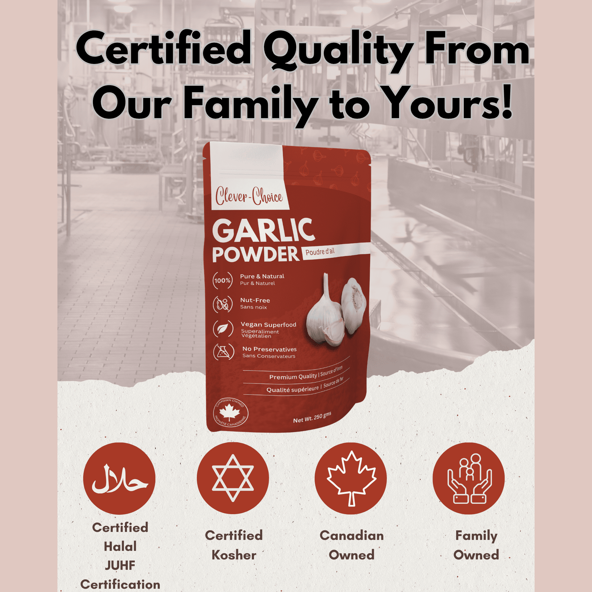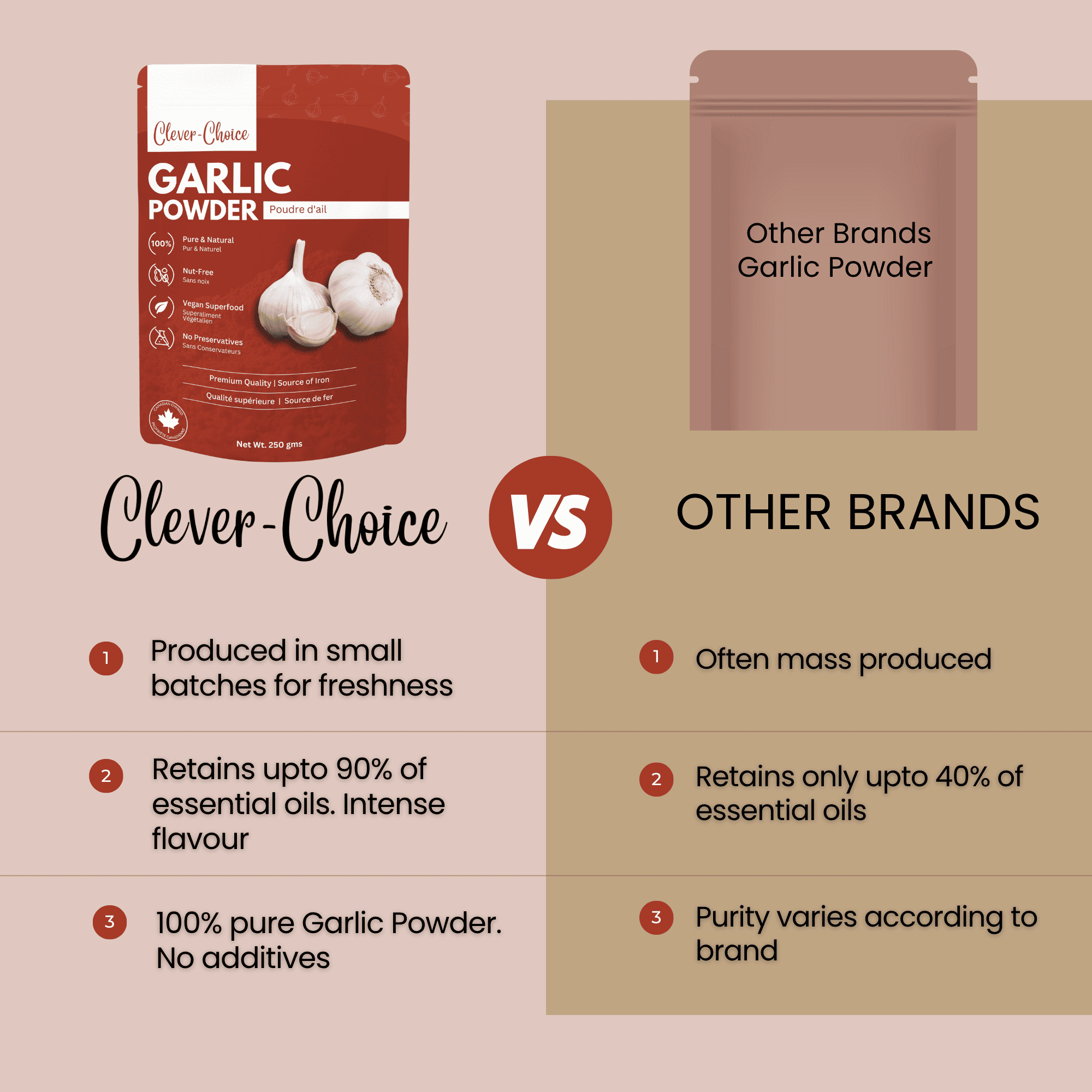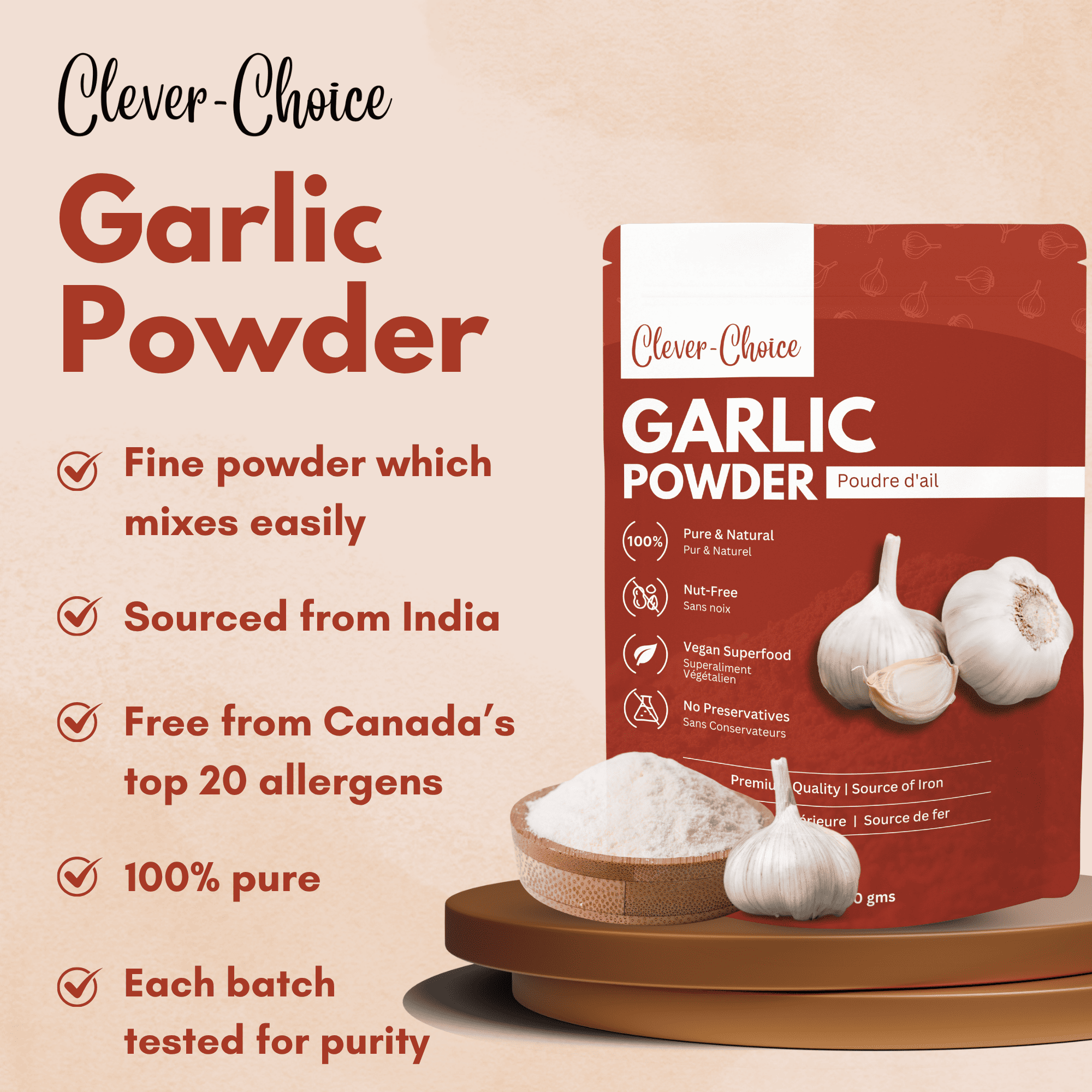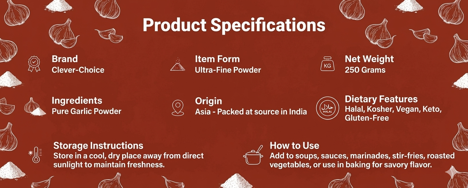 Clever-Choice Garlic Powder is the essential, high-potency secret weapon for every kitchen. Made from carefully dried and ground whole garlic cloves, our fine powder delivers a powerful, authentic garlic flavor instantly. Forget peeling and chopping—use our powder for quick, intense seasoning in any recipe, saving you valuable time without sacrificing taste.